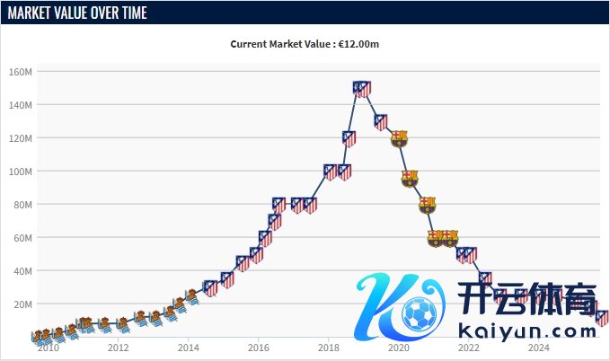 1991年生的格列兹曼咫尺还是34岁,身价下落是不免的。本赛季于今球员为马竞出战9场仅2球,西甲7场2首发5替补,欧冠2场2首发,算是马竞的交替主力。