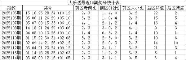 概述分析,大乐透第25115期前区012路比参考1:2:2。