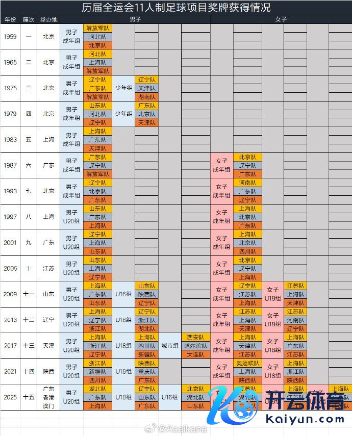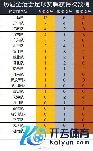 新统计了往届全运会11东说念主制足球名堂奖牌赢得情况和往届全运会足球奖牌赢得次数榜,见表。