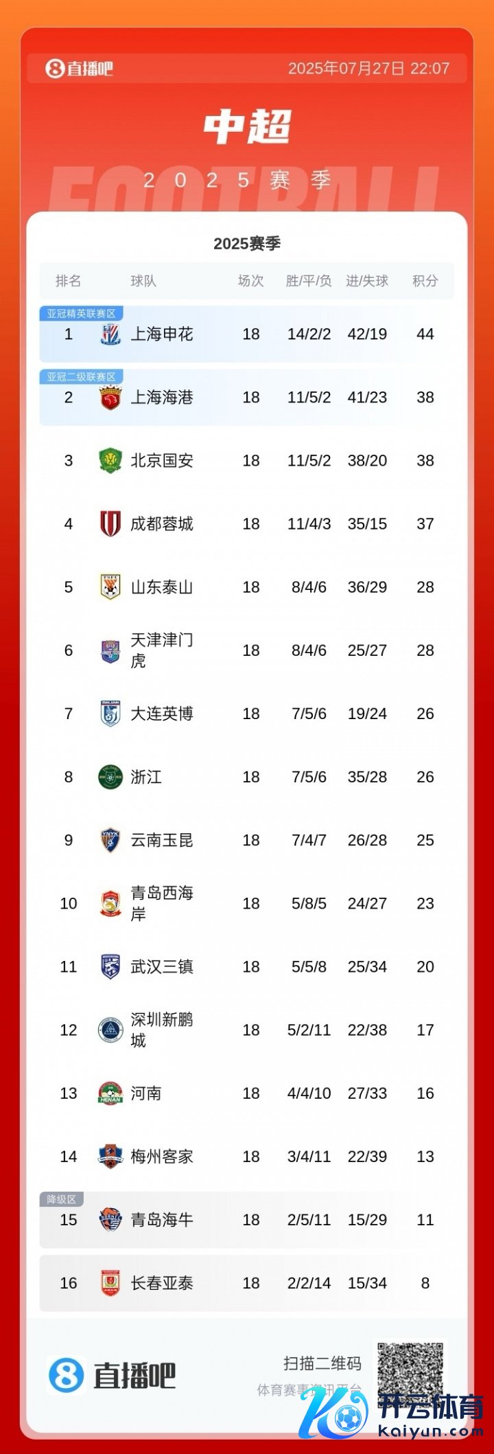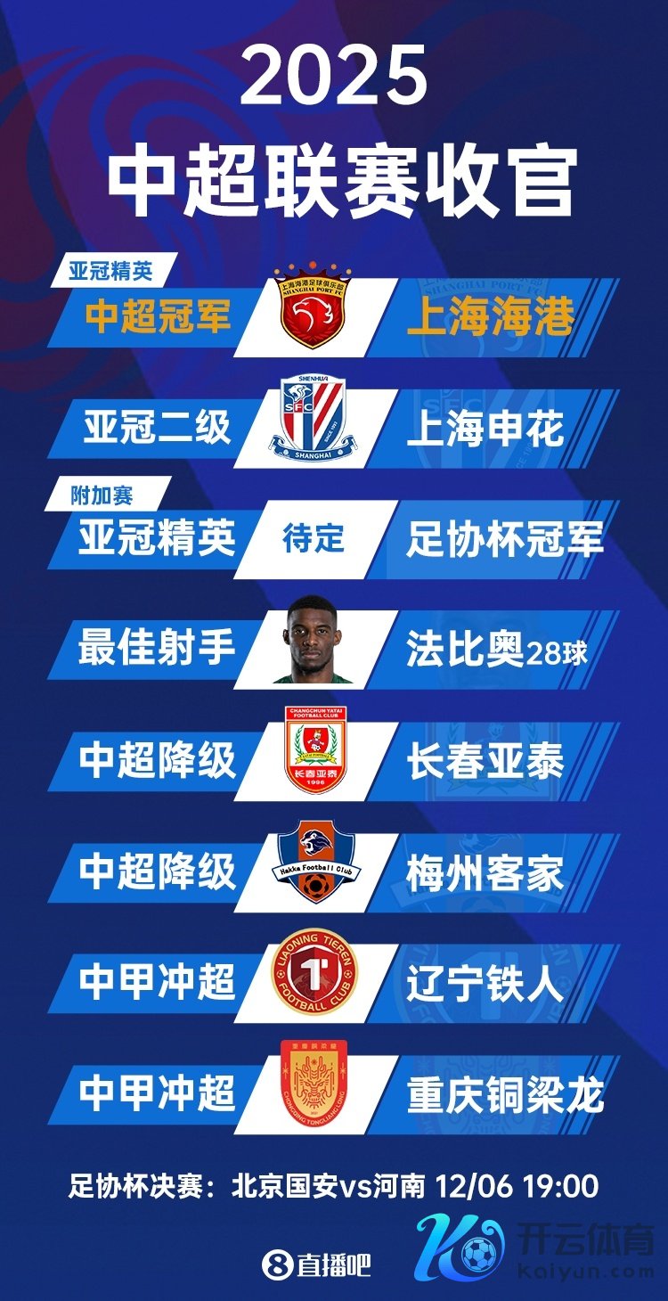 11月22日讯 2025赛季中超赛季收官,上海申花3-1客胜天津津门虎,2分之差赢得亚军。