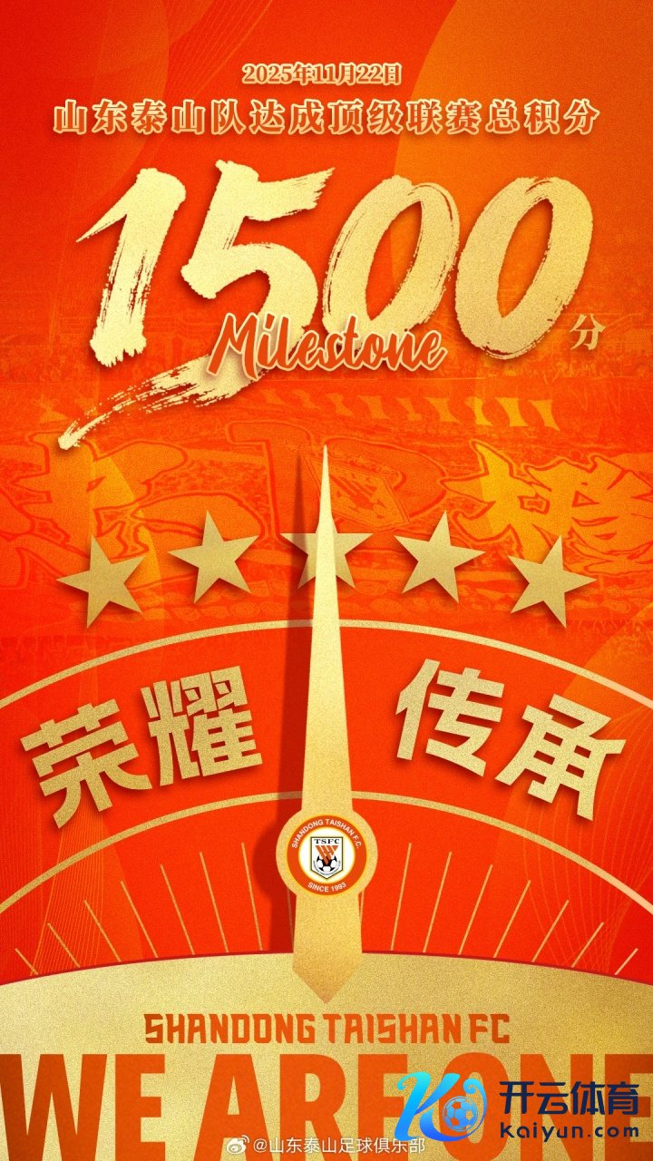2025中超联赛收官之战,山东泰山队客场 5:1 治服武汉三镇队。山东泰山足球俱乐部在中国顶级联赛荣获积分1500分,成为中超球队首支达到这一里程碑的俱乐部。这份荣耀凝结着历任泰山队球员的精诚融合、轻薄拼搏,集会着社会各界对泰山队的关切关爱、狂妄营救。在此,更要诚心感谢稠密球迷一又友的深情相伴和热忱奴隶。改日体育集锦,山东泰山足球俱乐部将长期秉抓“泰山队精神”,与通盘营救者齐心筑梦,传承山东足球荣光,续写期间绿茵据说。