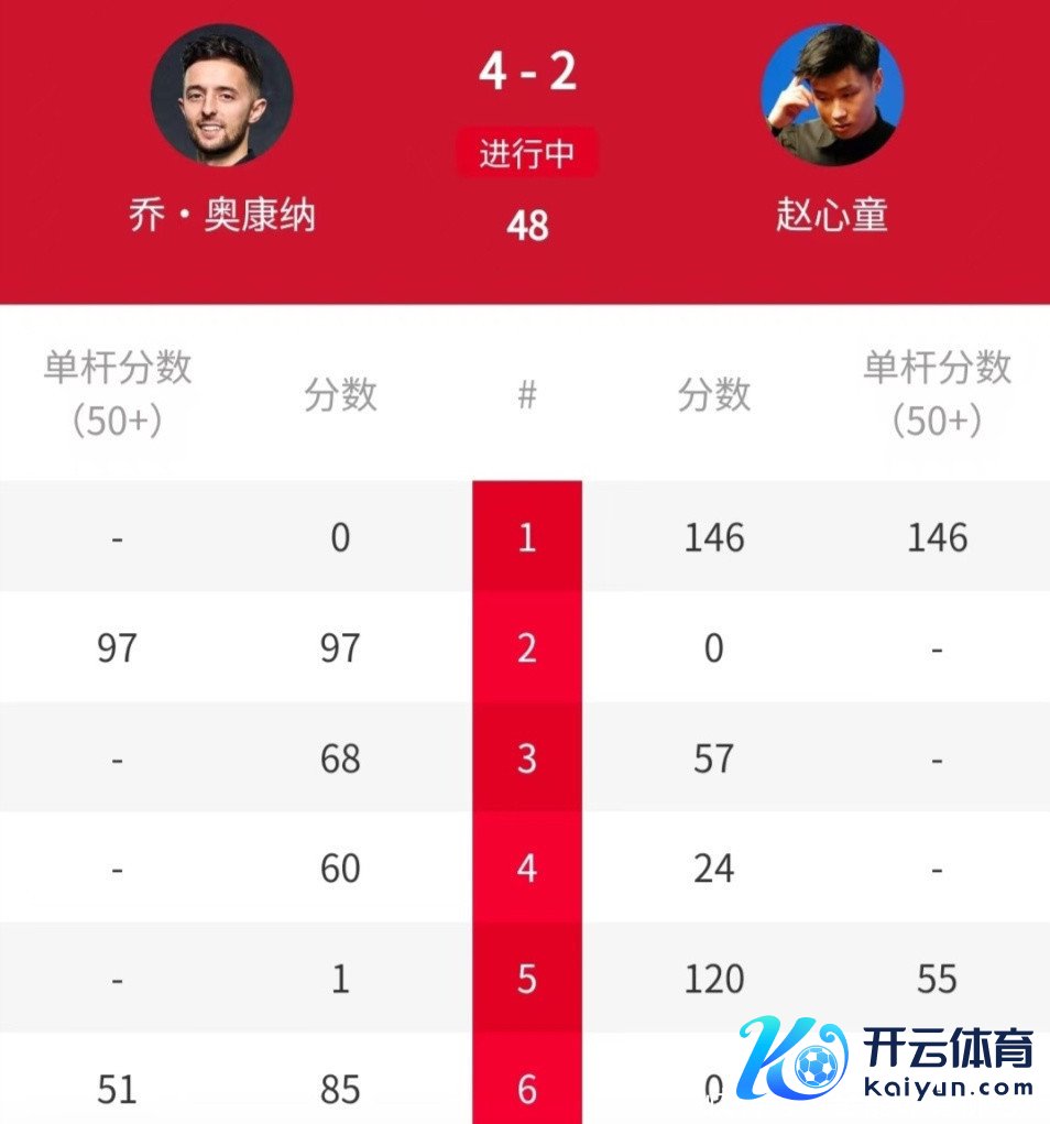 第二轮,赵心童迎战乔-奥康纳,后者具有不俗的实力,他在第一轮淘汰了最强小孩斯坦-穆迪。这场第一轮的比赛中,穆迪开场两杆50+,2-0开局。