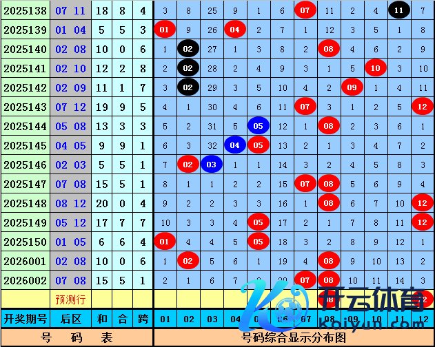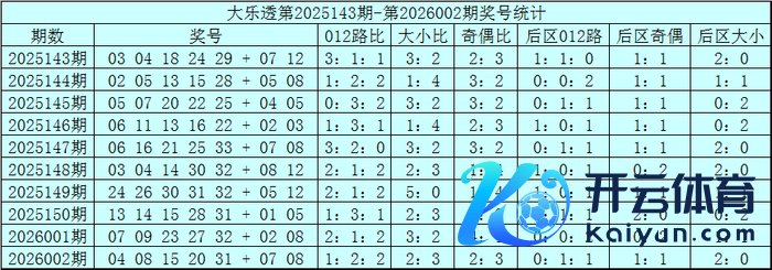 体彩大乐透第26002期奖号为:04 08 15 20 31+07 08,前区奖号012路比为1:2:2,奇偶比为2:3,大小比为2:3体育集锦,后区0路号码轮空。