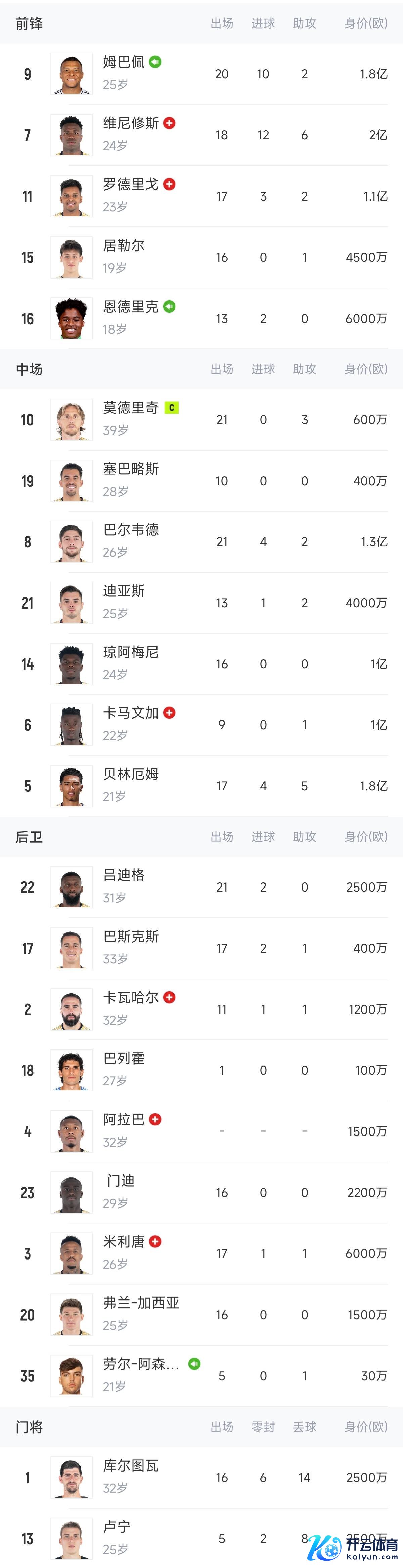 本轮西甲,皇马连伤贝林厄姆、费兰-门迪、恩德里克三名球员。