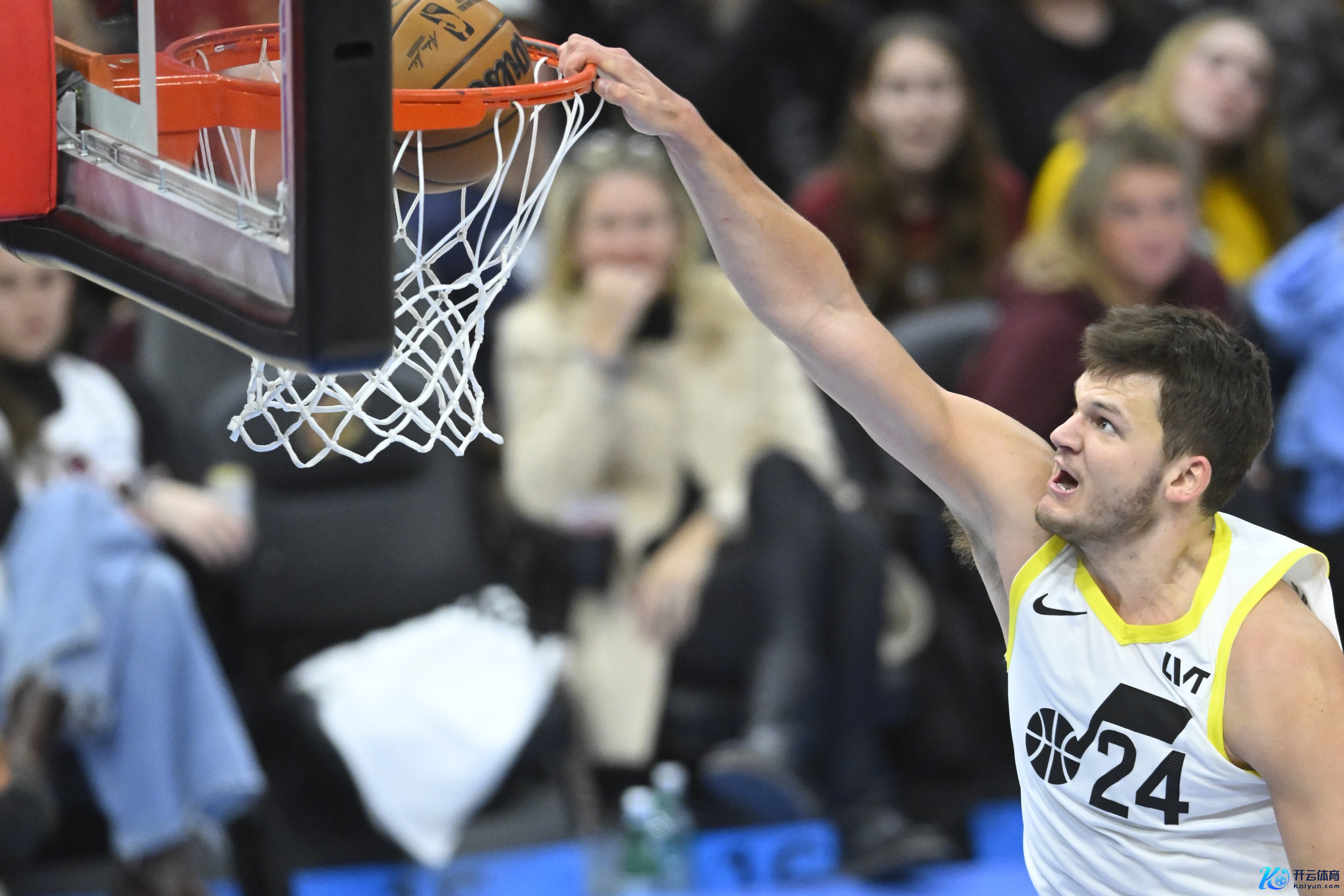 本场比赛,爵士中锋凯斯勒连接一柱承天,他在内线恣意抢板,为球队拼下了不少球权。