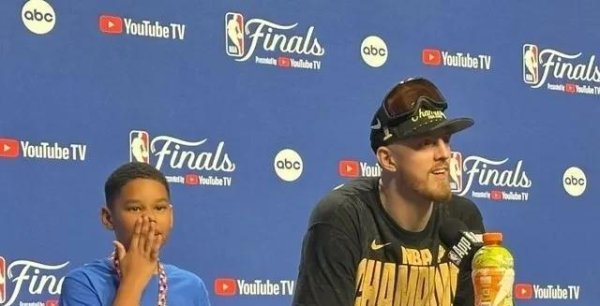雷霆拿下冠军后体育录像/图片,卡鲁索在采访时跳着说:“我手里的是真迹,总冠军啊!别的那些家伙再也不敢拿嘴砸我了!”