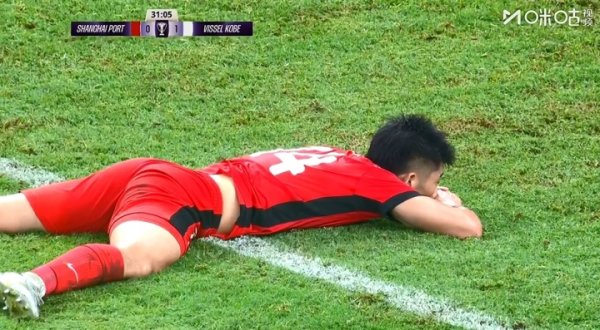 第31分钟,古斯塔沃倒钩,李圣龙近在当前的头球英勇攻门被扑,海港仍过期。错失良机后,李圣龙尽头颓靡。