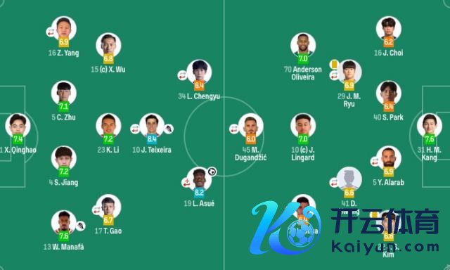 中场:10- 杰西 · 林加德(F)、41- 黄度允(87'7- 郑承原)、29- 柳在文(59'8- 李胜模)