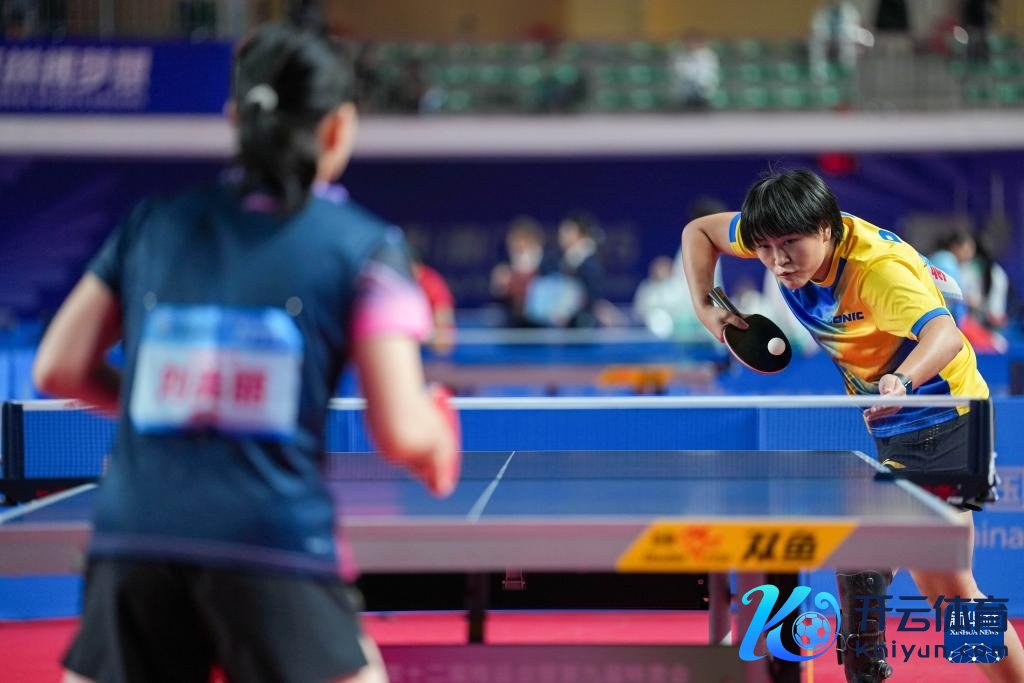 湖北队选手柳萌(右)在乒乓球TT9女子单打小组赛中体育录像/图片