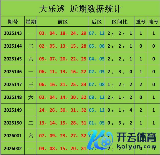 大乐透上期开出奖号:04 08 15 20 31+07 08,区间比是2 : 2 : 1,莫得开出连号体育录像/图片,莫得开出重号。
