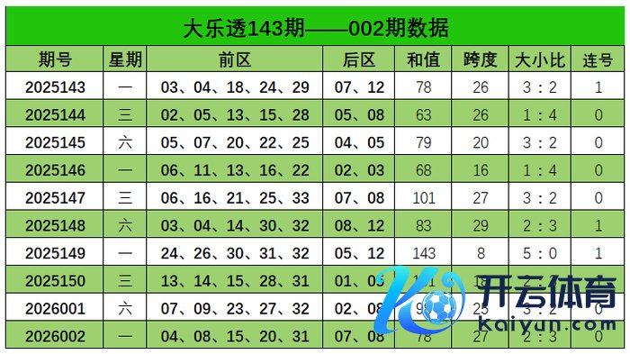 大乐透第2026002期出奖号统计:前区04、08、15、20、31,后区07、08。和值78,跨度27,大小比2:3,未开出连号。