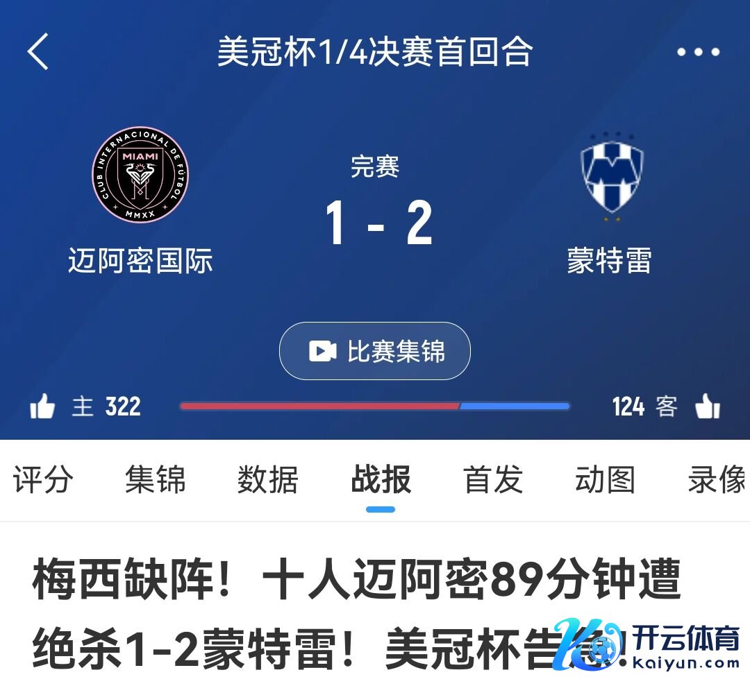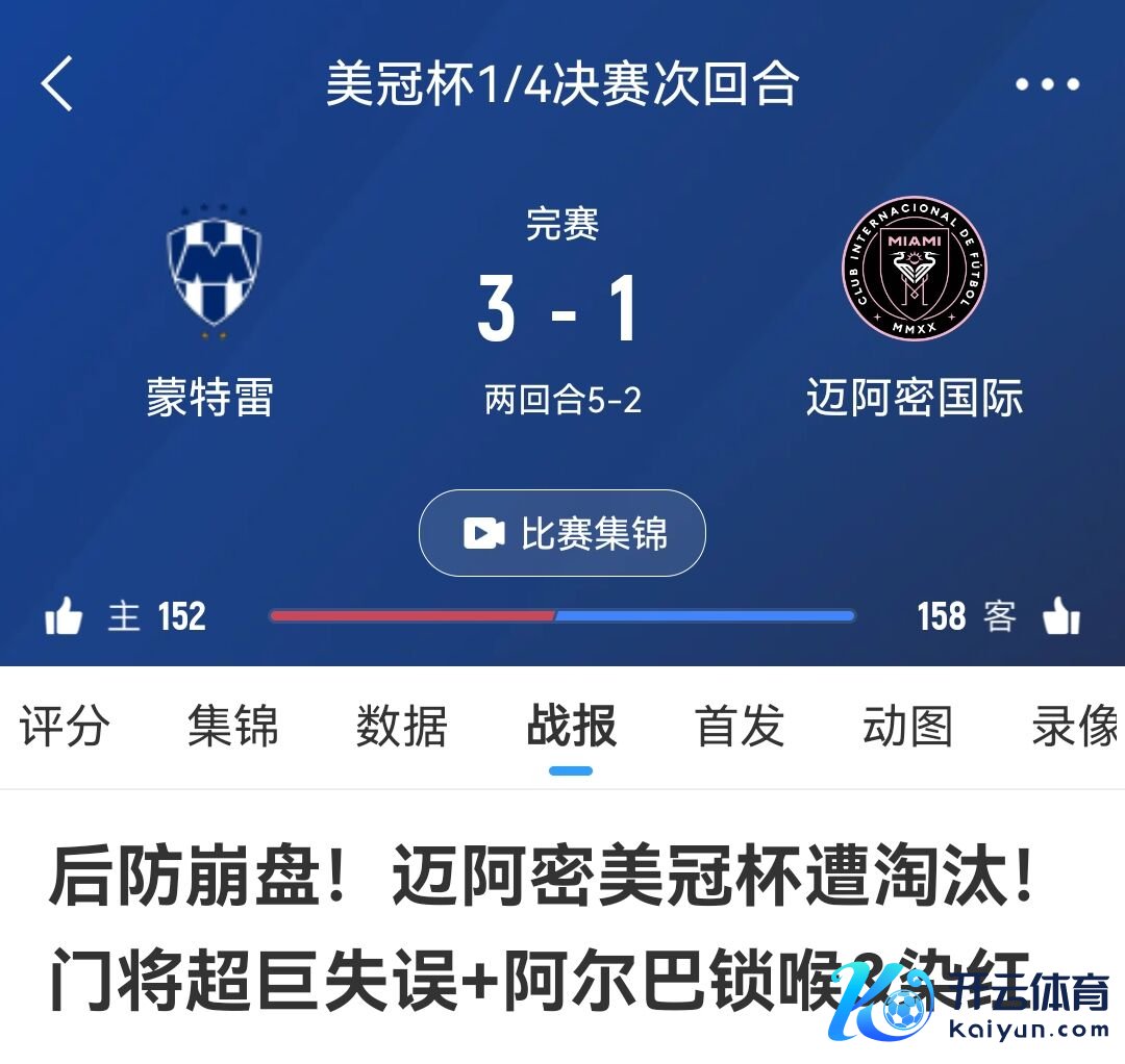 旧年的好意思冠杯,迈阿密国外两回合2-5惨遭蒙特雷淘汰,两回合比赛迈阿密国外皆有东谈主染红。