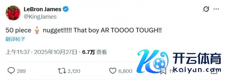 詹姆斯发推庆祝:“50 块🐔鸡块!!!!! 那男孩AR太强了!!”体育赛事直播