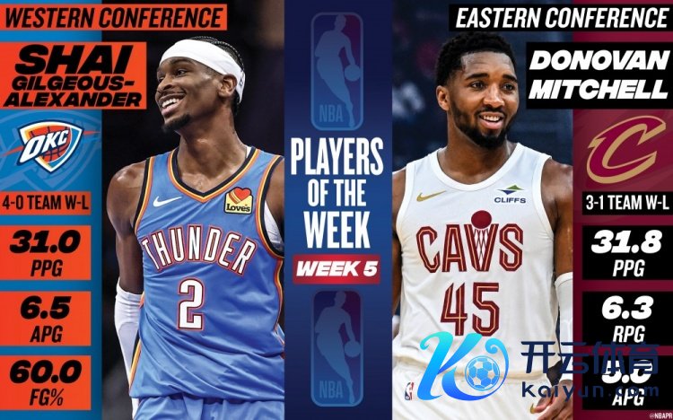 11月25日讯 当天NBA官方秘书,亚历山大和米切尔辩别当选25-26赛季第5周西部和东部周最好球员。