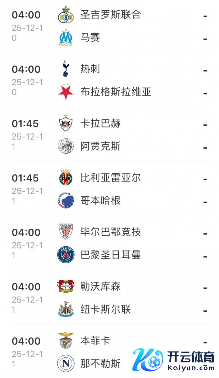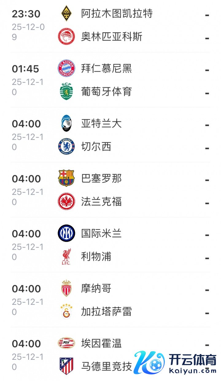 11月27日讯 欧冠第5轮比赛一说念适度,阿森纳5轮全胜3分领跑,巴黎、拜仁、国米、皇马4队同分分列第2-5名,切尔西第10,利物浦第11。第6轮比赛将在北京时间12月9日-11日进行,届时只消阿拉木图凯拉特的比赛会在晚上11点半进行。