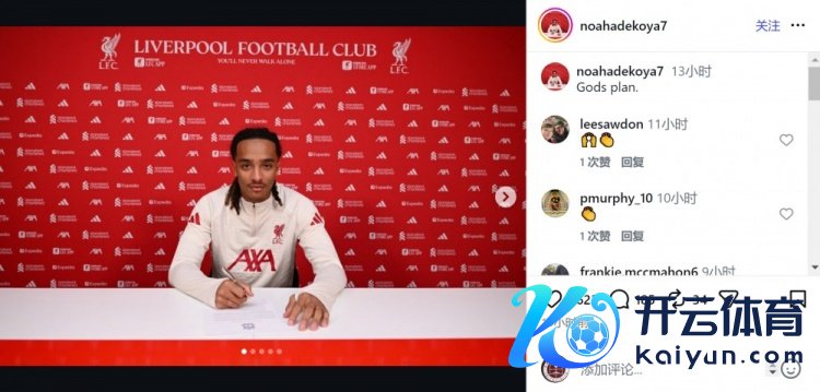 阿德科亚离开伯恩利梯队,成为目田球员,他在应付媒体上晒出签约像片,晓示加盟利物浦,配文:“天主的蓄意。”