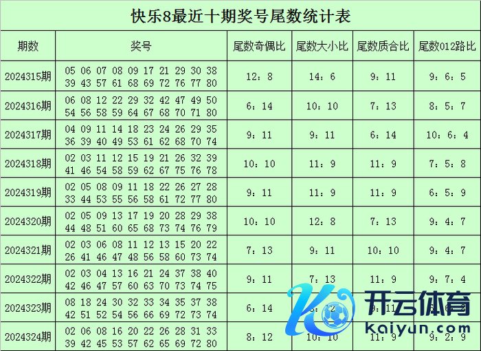 福彩繁盛8第2024324期开奖回首:02 06 08 16 20 22 26 28 31 33 39 42 45 53 57 62 65 69 72 80,其中奖号余数奇偶比为8:12,余数012路比为9:2:9,余数大小比为10:10,余数质合比为11:9。