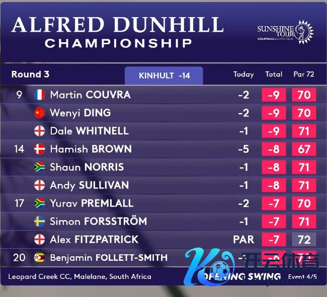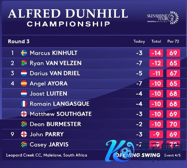 然而瑞典东谈主在后九洞打出超卓的35杆,包括临了一个洞捏到小鸟,第三轮就成绩69杆,三轮成绩为202杆(65-68-69),低于圭臬杆14杆,也将最接近的挑战者莱安-范-费尔岑(Ryan Van Velzen)甩到2杆之后。