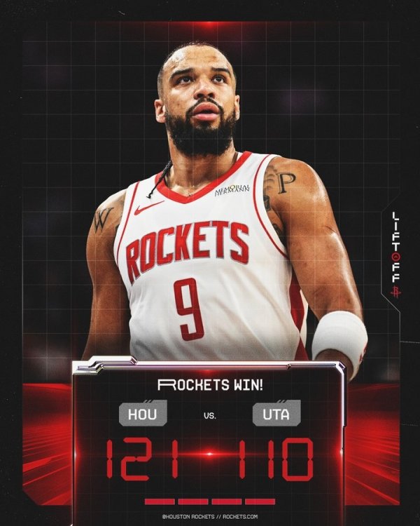 赛后火箭官方晒出本场奏效海报,狄龙-布鲁克斯登上封面。
