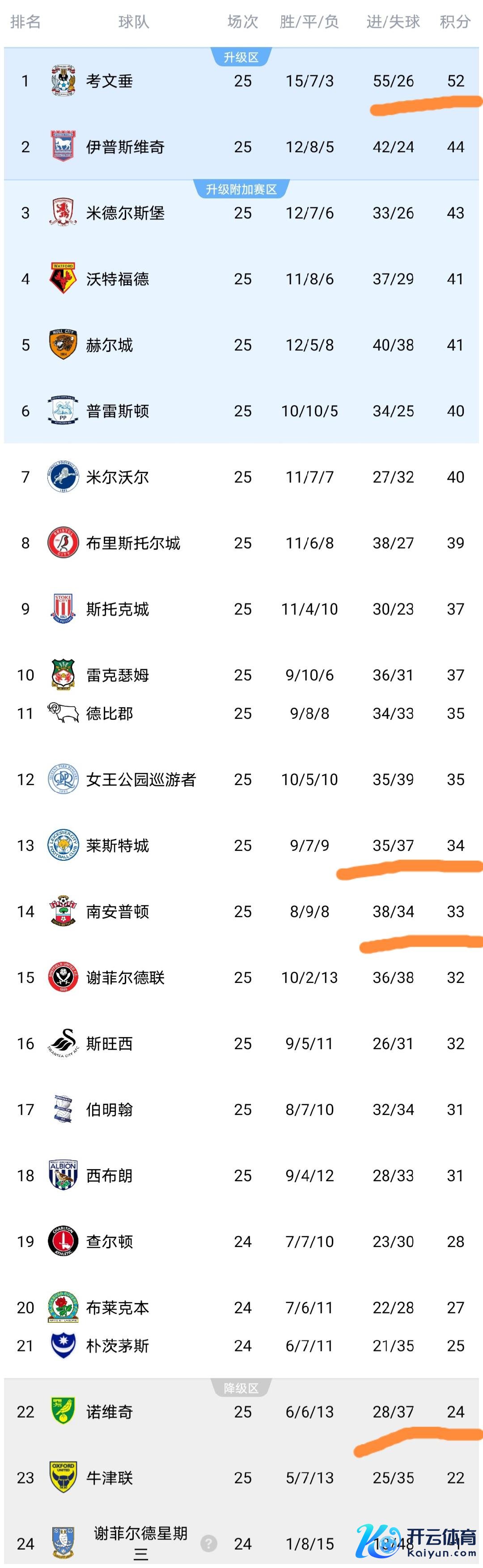 此外咱们不错看到莱斯特城队和南安普顿队积分不睬思,其中英超前冠军莱斯特城队积34分逾期第6的普雷斯顿队6分,而南安普顿积33分逾期第6的帕雷德斯队7分,不要到时莱斯特城和南安普顿连升级附加赛皆捞不到就搞笑了。这也阐明英冠竞争非常热烈,来到英冠也不是那么好混的。咱们不错看到诺维奇在左迁区,这支被誉为英超升降机的球队如今在英冠也只可保级了。
