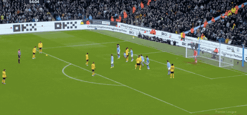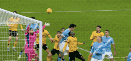 第86分钟,狼队获取角球,莫斯克拉抢在哈兰德之前头球后蹭攻门,皮球砸在横梁上方。