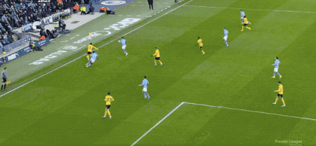 上半场补时阶段,曼城前场鸠合传递,B席送出助攻,塞梅尼奥完成进球。