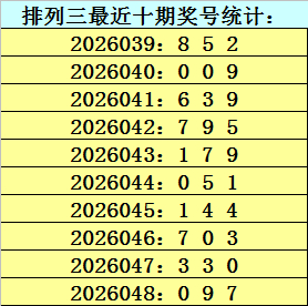 上期转头:陈设三第2026048期开奖号码为097,历史上组选出现46次,直选出现10次。
