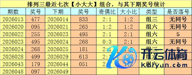奖号类型分析:陈列三最近七次【小大大】组合与【偶奇奇】组合出现之后,其下期组三号码开出4次,组六号码开出10次,其中组六号码开出频率相当热,本期展望络续开出组六号码。另外,其下期开奖有7期奖号包含了重号,本期展望络续开出重号,参考号码0。