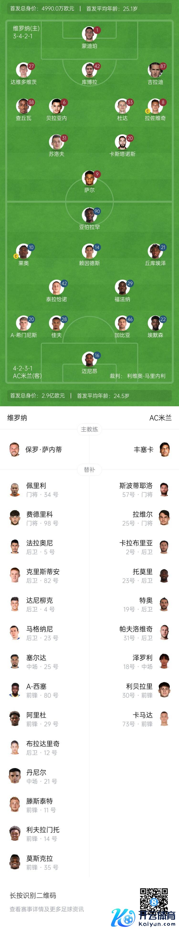 维罗纳首发:1-蒙迪珀、27-戴维多维茨、42-科波拉、87-吉拉迪、38-查丘瓦、20-卡斯塔诺斯、33-杜达、6-贝拉亚内、8-拉佐维奇、31-苏洛夫、9-萨尔