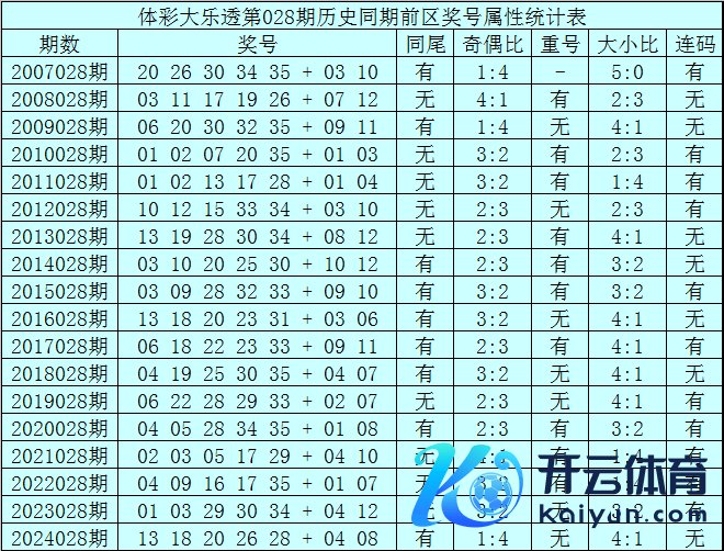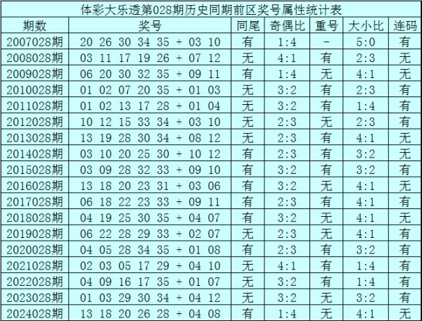 体彩大乐透第028期历史同时开出18次奖号,其统计详见下表:
